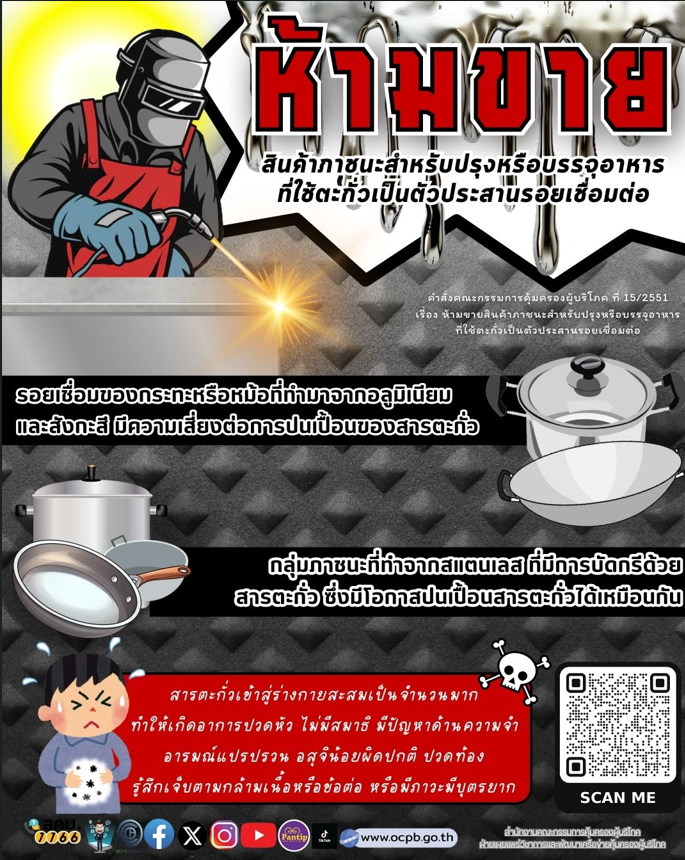 5) ห้ามขาย สินค้าภาชนะสำหรับปรุงหรือบรรจุอาหารที่ใช้ตะกั่วเป็นตัวประสานรอยต่อ