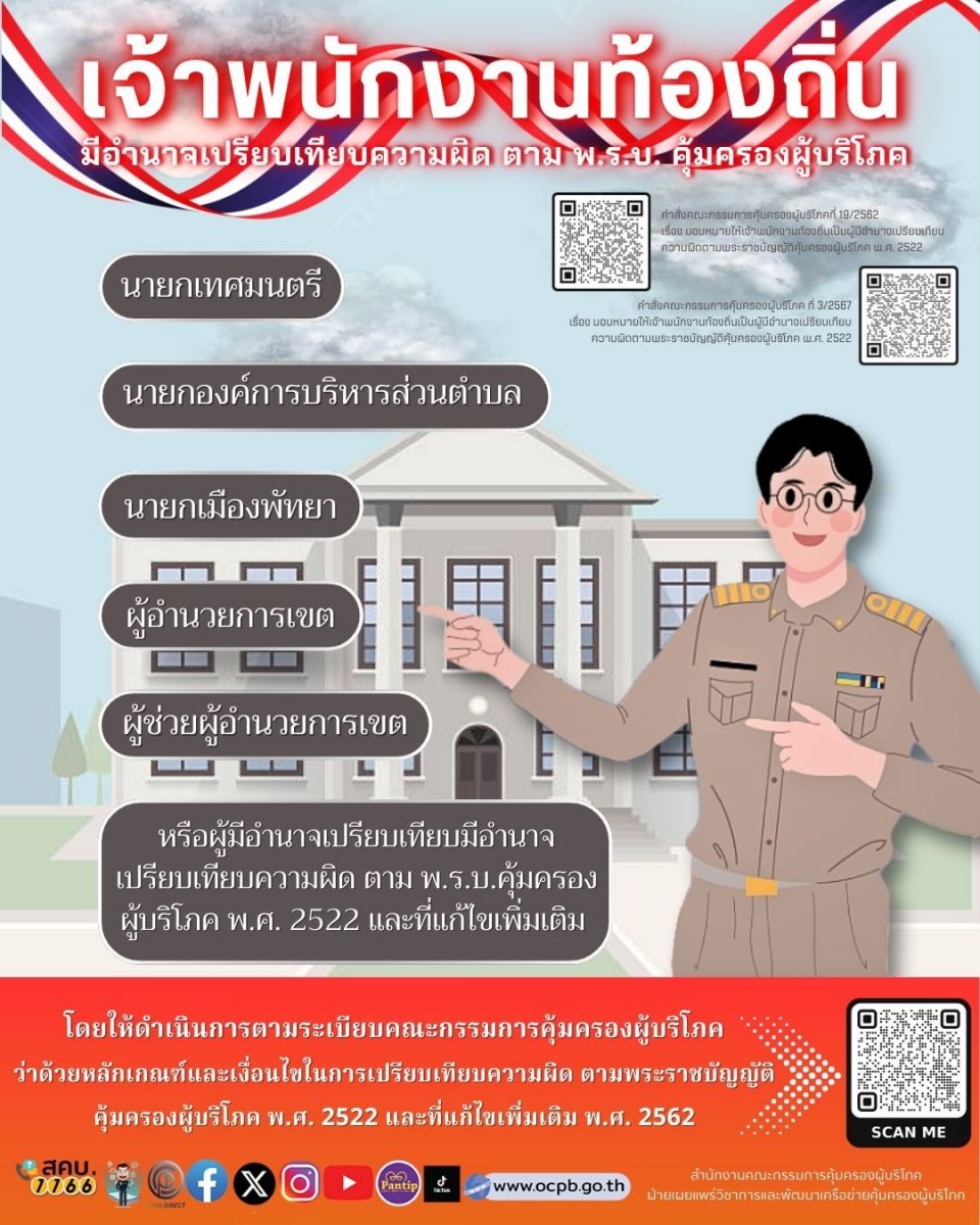1) เจ้าหน้าที่พนักงานท้องถิ่นมีอำนาจเปรียบเทียบความผิด ตาม พ.ร.บ. คุ้มครองผู้บริโภค